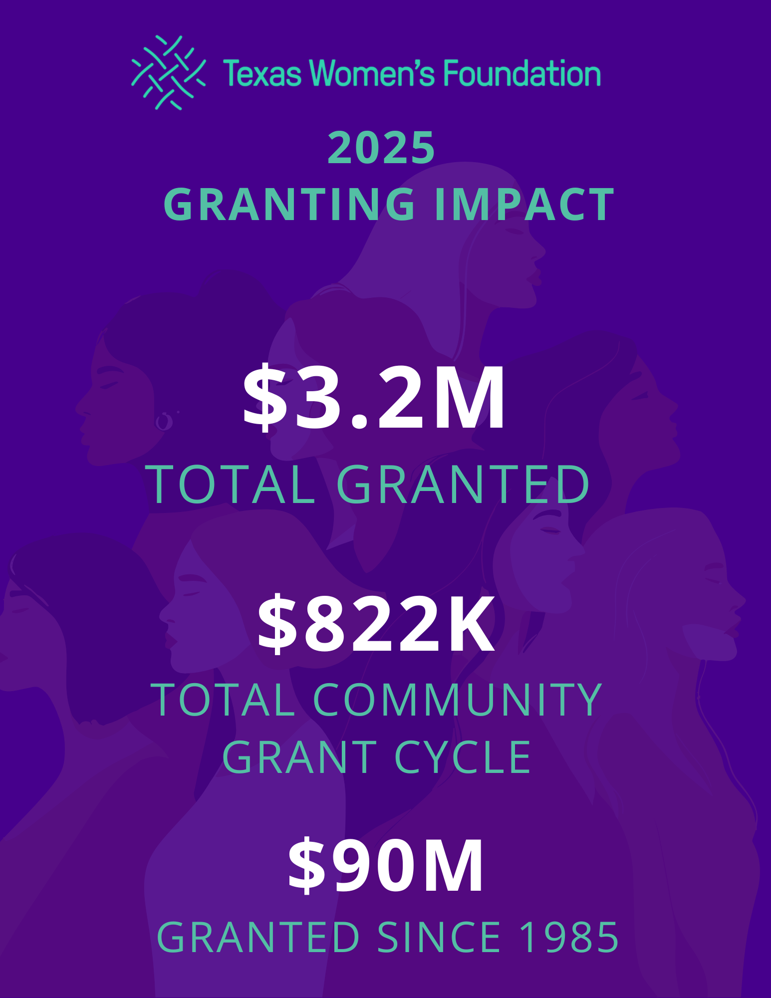 The Texas Women’s Foundation’s Community Grant Cycle is an annual cycle focused on supporting and empowering women and girls in the Dallas-Fort Worth metroplex and contiguous counties. To learn more, read through our 2025 Guidelines under the ‘Guidelines, Glossary, & FAQ’ tab below.
